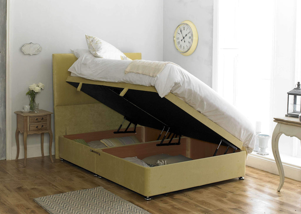 The Side Premier Ottoman Divan Bed Base has been photographed with a standard headboard. Headboards and mattresses are purchased separately. The divan can be paired with any standard UK size headboard.