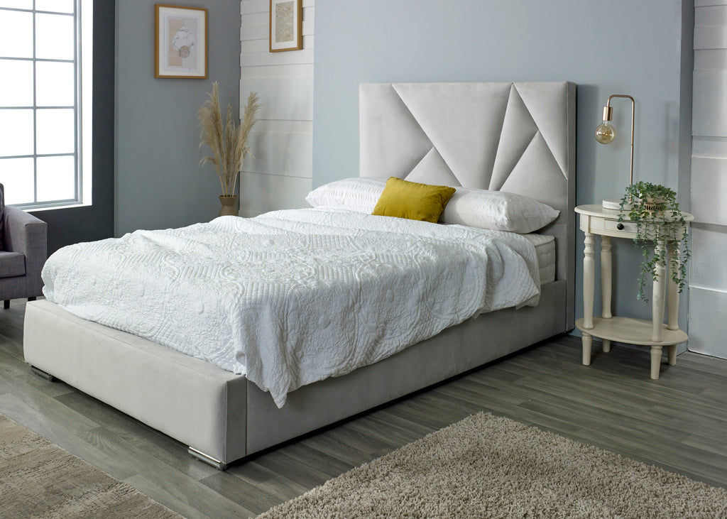 Bring a bold, contemporary touch to your bedroom with the modern Isla Bed Frame. Featuring a striking geometric headboard design, this piece effortlessly combines modern style with luxurious comfort. The unique angular pattern on the headboard creates a statement focal point, perfect for those who appreciate clean lines and innovative design.